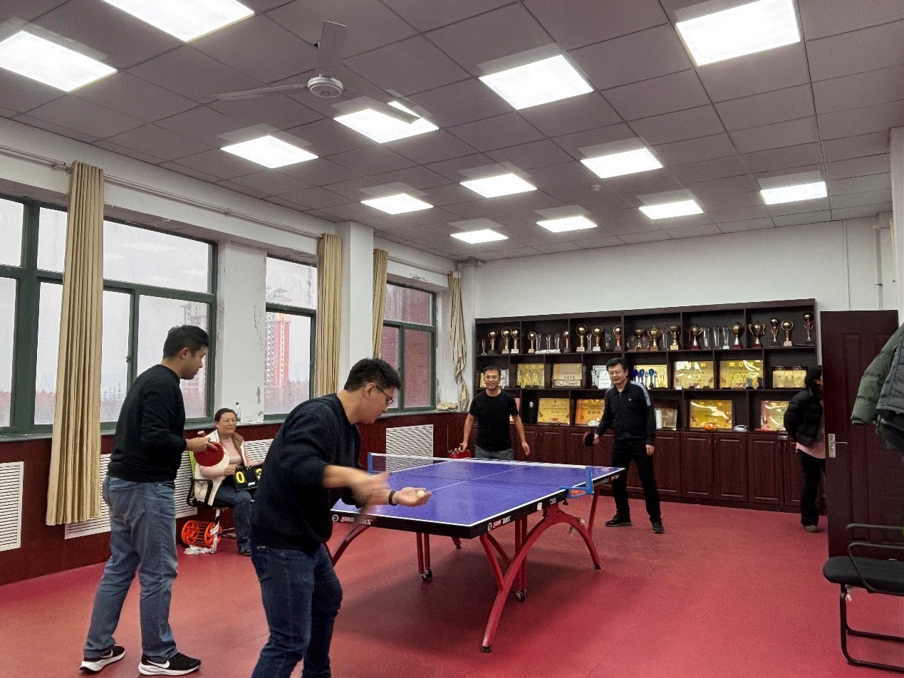 比赛采用循环积分制,设有单打、双打等环节,现场赛程紧凑、对抗激烈。教职工们一改平日的严肃稳重,在球台前步伐灵动、攻守有度,既有沉稳的控制,也有凌厉的进攻,精彩回合不断引发阵阵掌声。赛场边,队友的助威声、欢笑声此起彼伏,气氛热烈融洽。经过多轮角逐,机关代表队最终摘得团体冠军。