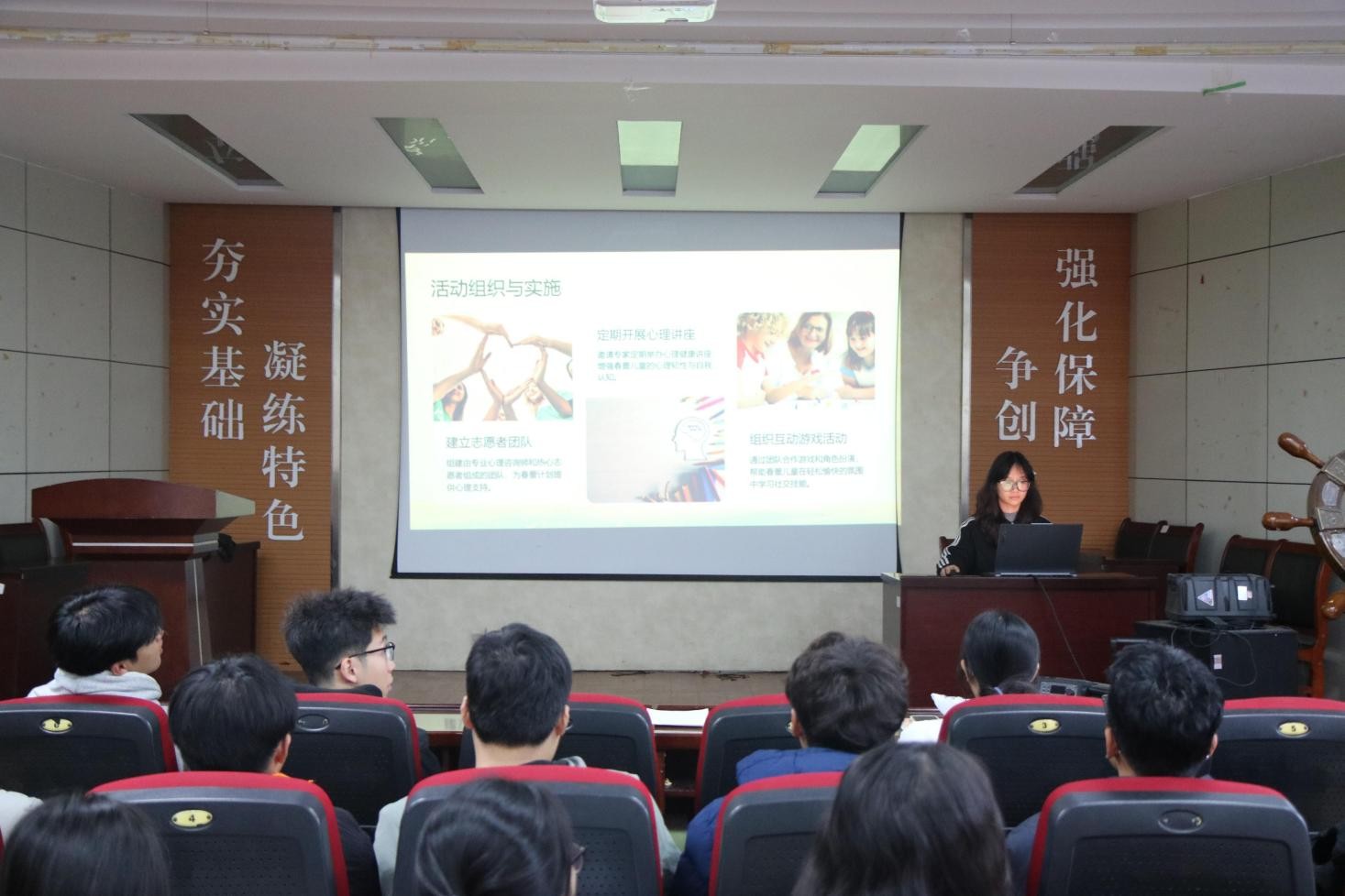 “关爱‘春蕾’,陪伴成长”主题团课在J2-104开班,作为该系列主题团课的第四讲,此次课程的主题是“心护春蕾·语润心田”,由“护蕾”志愿者王秀子主讲,全体学生会成员参加。
