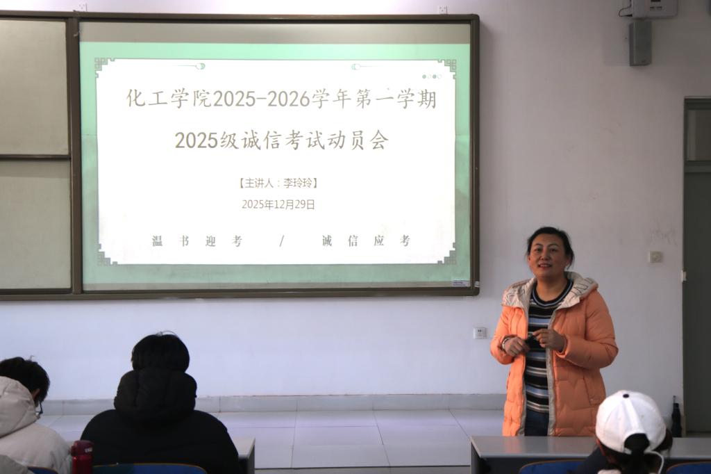 在J1-228教室召开2025级本科生诚信考试动员会。本次会议由2025级辅导员李玲玲老师主持,全体2025级本科生到场聆听。