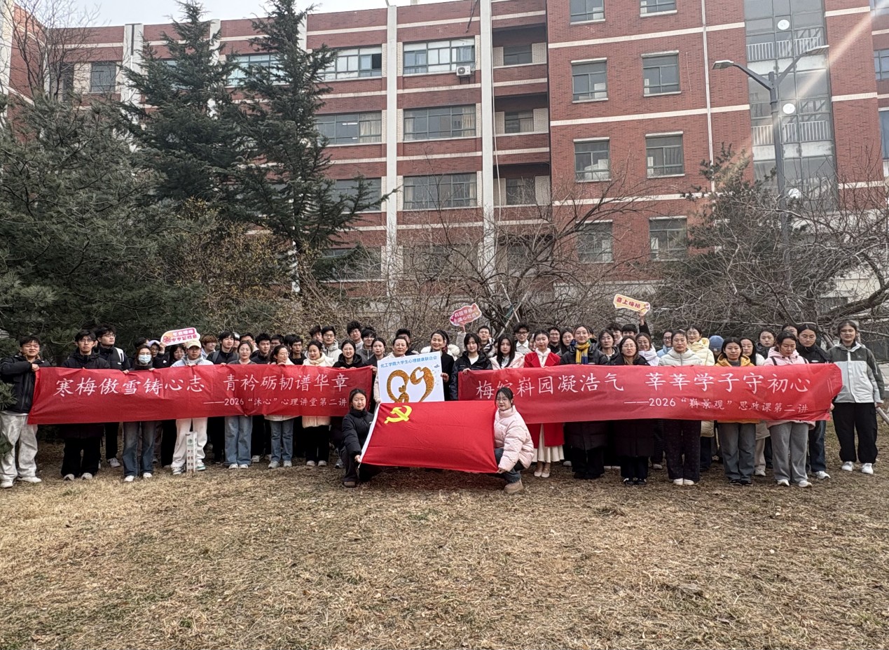 随后,进入“红歌故事梅花韵”环节。易凡动情讲述了江姐的革命事迹,并清唱《红梅赞》,以梅喻人,深刻诠释了共产党人的忠诚信仰与坚贞风骨。最后的“霜雪凌寒守梅心”环节中,心理健康联合会的张益豪同学从心理学角度阐释如何从腊梅“耐寒”与“不争”的特质中汲取力量,锤炼应对学业压力与人生挫折的心理韧性。课程尾声,师生拾取落梅共同拼制出心理健康联合会会标,易凡在课程总结中叮嘱大家寒假期间要不畏严寒,勤学苦练,增强本领,并表达了对除夕、春节的美好祝愿,号召大家秉持梅之风骨坚守初心,一道为中华民族伟大复兴贡献力量。