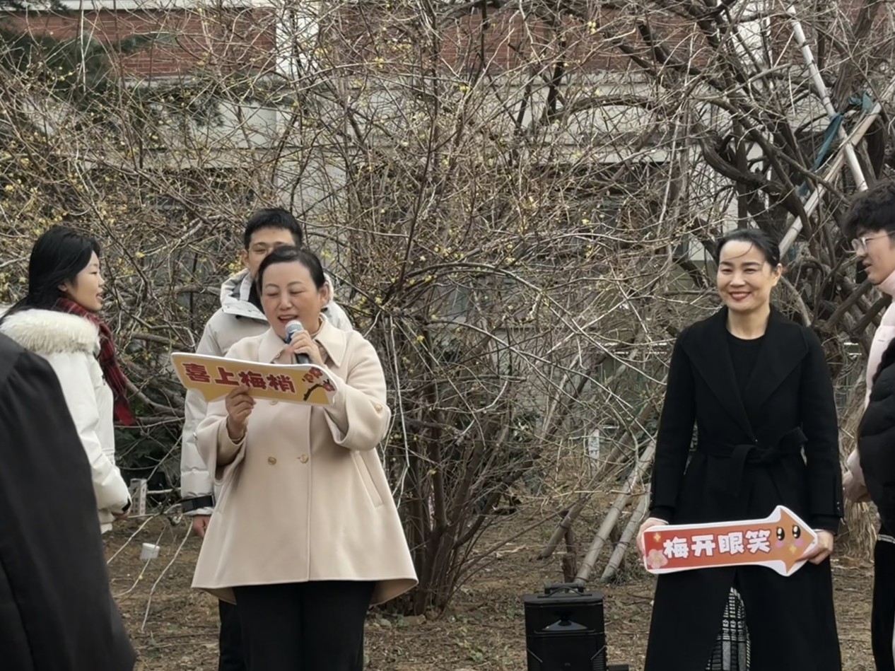 团委书记兼学工办主任易凡主持,以“梅绽嵙园凝浩气 莘莘学子守初心”为主题,特邀院心理健康负责老师李玲玲及院研究生党支部、心理健康联合会部分学生代表参与课程。在暗香浮动的园中,以梅为媒,效古人雅集之风,疏影横斜,畅叙幽情,师生携手上了一堂融合自然美育、诗词文化、红色传承与心理育人的沉浸式思政课。