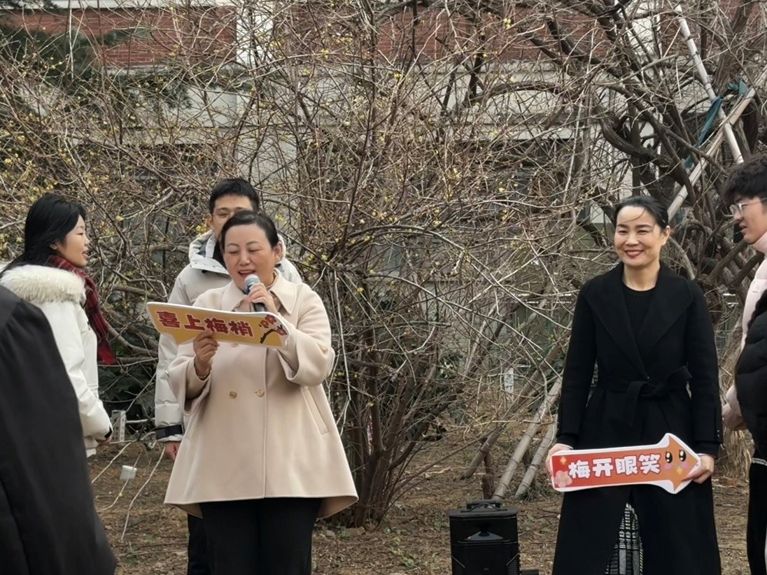 于学校腊梅园举办2026年“沐心”心理讲堂第二讲。本次讲堂以“寒梅傲雪铸心志,青衿砺韧谱华章”为主题,将心理教育与“嵙景观”思政课有机融合,由麻豆国产心理健康教育负责老师李玲玲主持。冬日园中,师生共聚,在雅致温馨的氛围中展开生动育人实践。